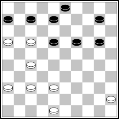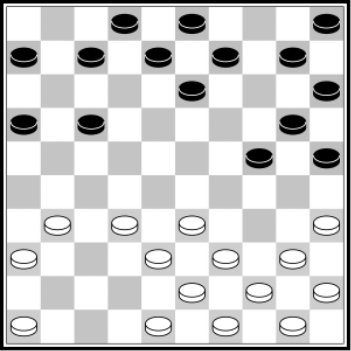 1.31-26 20-25 2.37-31 14-20 3.32-27 17×37 4.41×32 11-17 5.47-41 7-11 6.41-37 1-7 7.31-27 17-21 8.26×17 11×31 9.37×26 16-21 10.26×17 18×16 In iepening sa as dy faaks spile wurdt. 11.42-37 19-24 12.34×14 4×24 Dit kin wol, mar wurdt net sa faak spile. 13.37-31 12-17   Wyt kin no in daam helje, Mar dat soe ferkeard rinne. Swart kin de daam mei ien hout ôfnimme en sil dan foar komme.