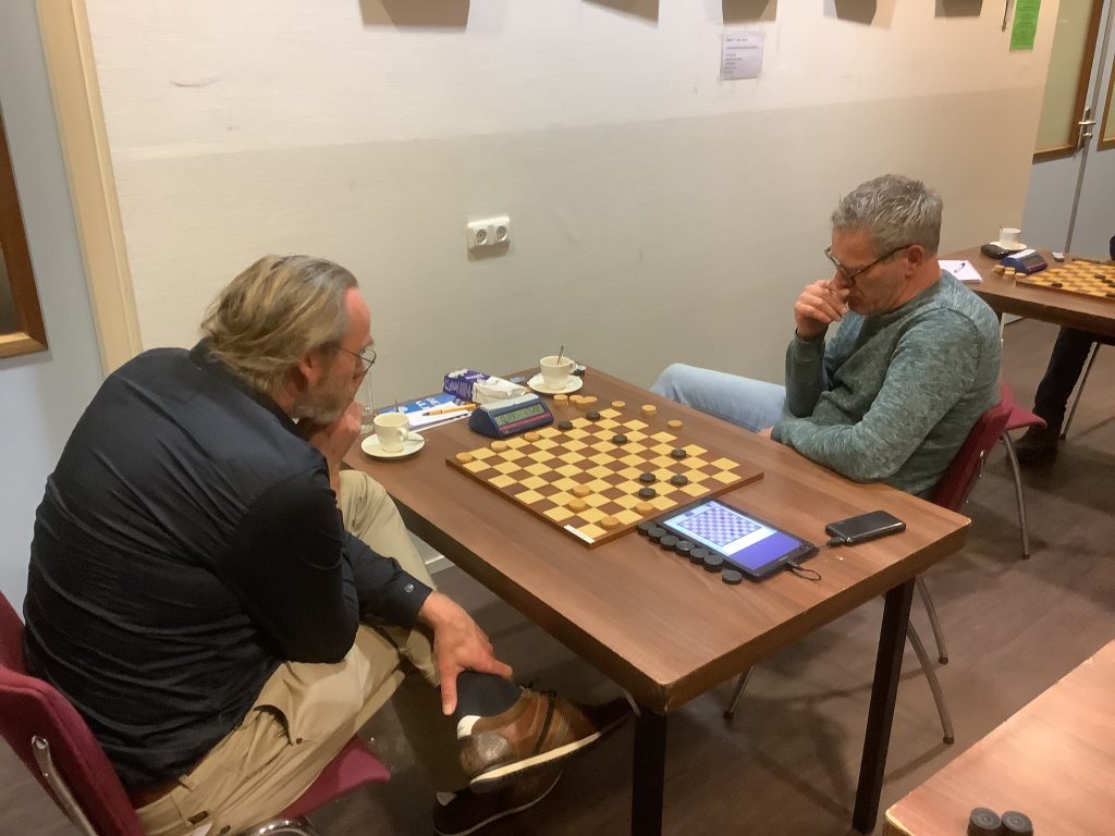 Skearnegoutum – Yn ‘e earste twa omlopen fan it persoanlik kampioenkip yn it Frysk damjen lieten de wichtichste gadingmakkers gjin stekken falle. Marten Walinga en Jelle Wiersma, dy lêste no ek al wer in moai tal jierren de sterkste dammer yn it Fryske spul, wûnen sneon beide partijen. Wol ferrassend wie dat Taeke Kooistra, yn syn wat jongere jierren rekordhâlder yn it tal kampioenskippen, no al oan it ôfheakjen is. Syn rol fan outsider liket oernaam te wurden troch Henk Haanstra, al moast dy tsjin syn Aldegeaster doarpsgenoat Siebe Walinga wol in kampspul tastean. De Gastmarder Pieter Hoogterp moat likegoed ek yn ‘e gaten holden wurde. Hy wûn knap fan Kooistra, en hat syn partij tsjin Wiersma al hân.
